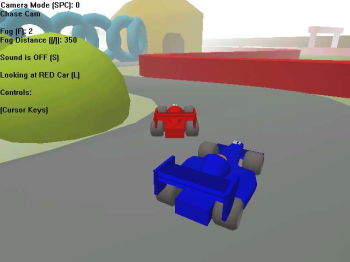 This game uses Direct X to create a 3D environment that can be raced around. You can challenge another player and watch the action from many camera angles. Has sound, collision detection, and environmental effects such as fog.